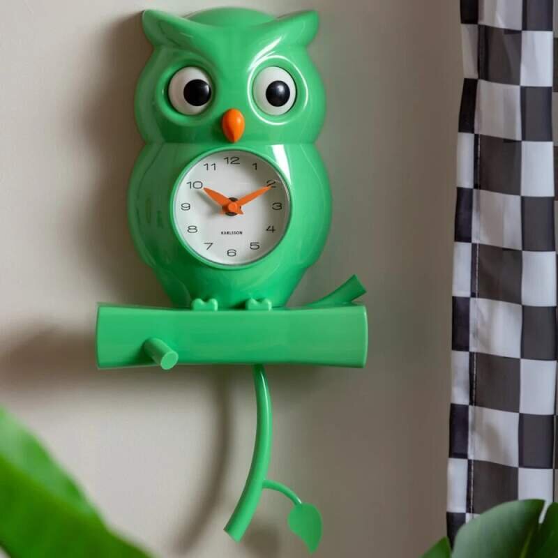 Nástěnné hodiny s kyvadlem sova OWL zelené KARLSSON