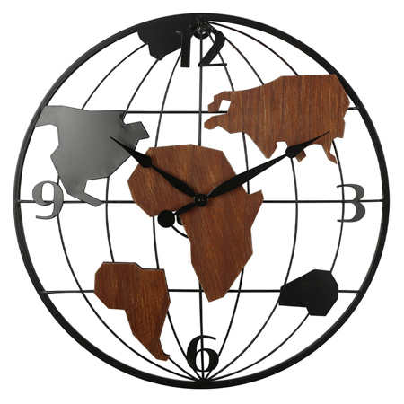Hodiny nástěnné - světadíly, kovové, 40 cm