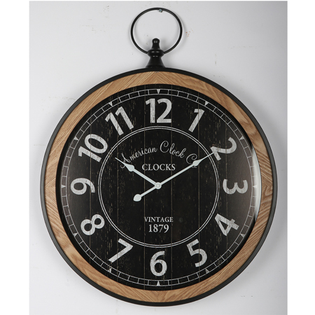 Tyto nástěnné hodiny s průměrem 58 cm připomínají elegantní pánské kapesní hodinky a kombinují kov s MDF pro sofistikovaný vzhled. Černý střed ciferníku je kontrastně zdoben bílými arabskými číslicemi a ručičkami, které zajišťují snadné čtení času. Nadčasový design je doplněn závěsným kroužkem na vrchu, který dodává hodinám na originalitě a umožňuje jejich snadné zavěšení.