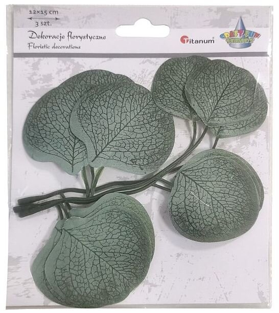 Liście na gałązce, zielone, wymiary: 12 x 15 cm. 3 sztuki. číst celé
