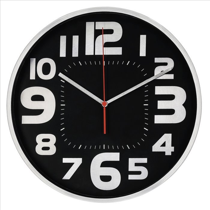 Elegantní nástěnné hodiny v netradičním provedení s velkými číslicemi z kartáčovaného hliníku. Nabízí tichý chod bez hlasitého tikání. K napájení slouží jedna AA baterie.