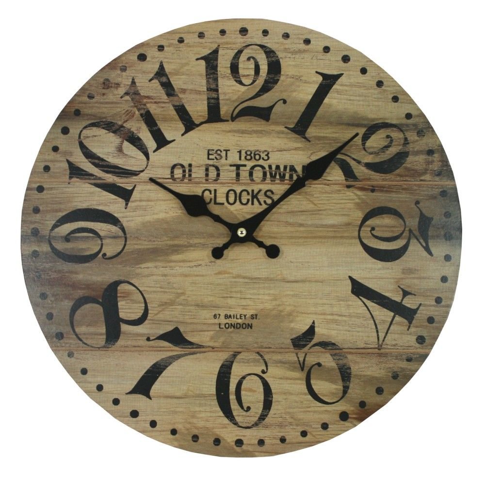 Dřevěné nástěnné hodiny OLD TOWN dřevo. Průměr 34cm. Napájení 1 x 1,5V AA baterie. číst celé