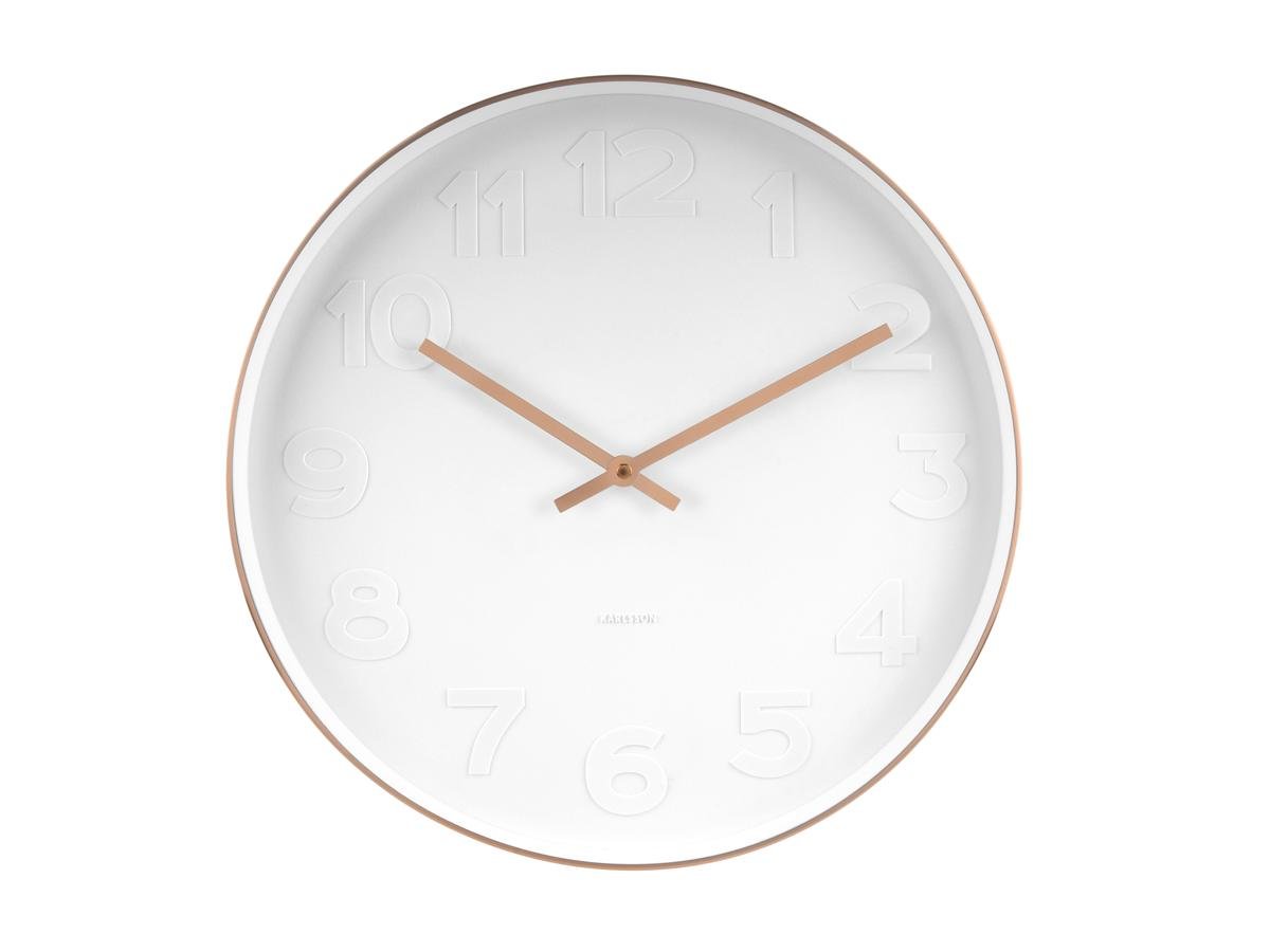 Elegantní hodiny s embosovanými čísly na ciferníku, který je krytý ochranným sklem.