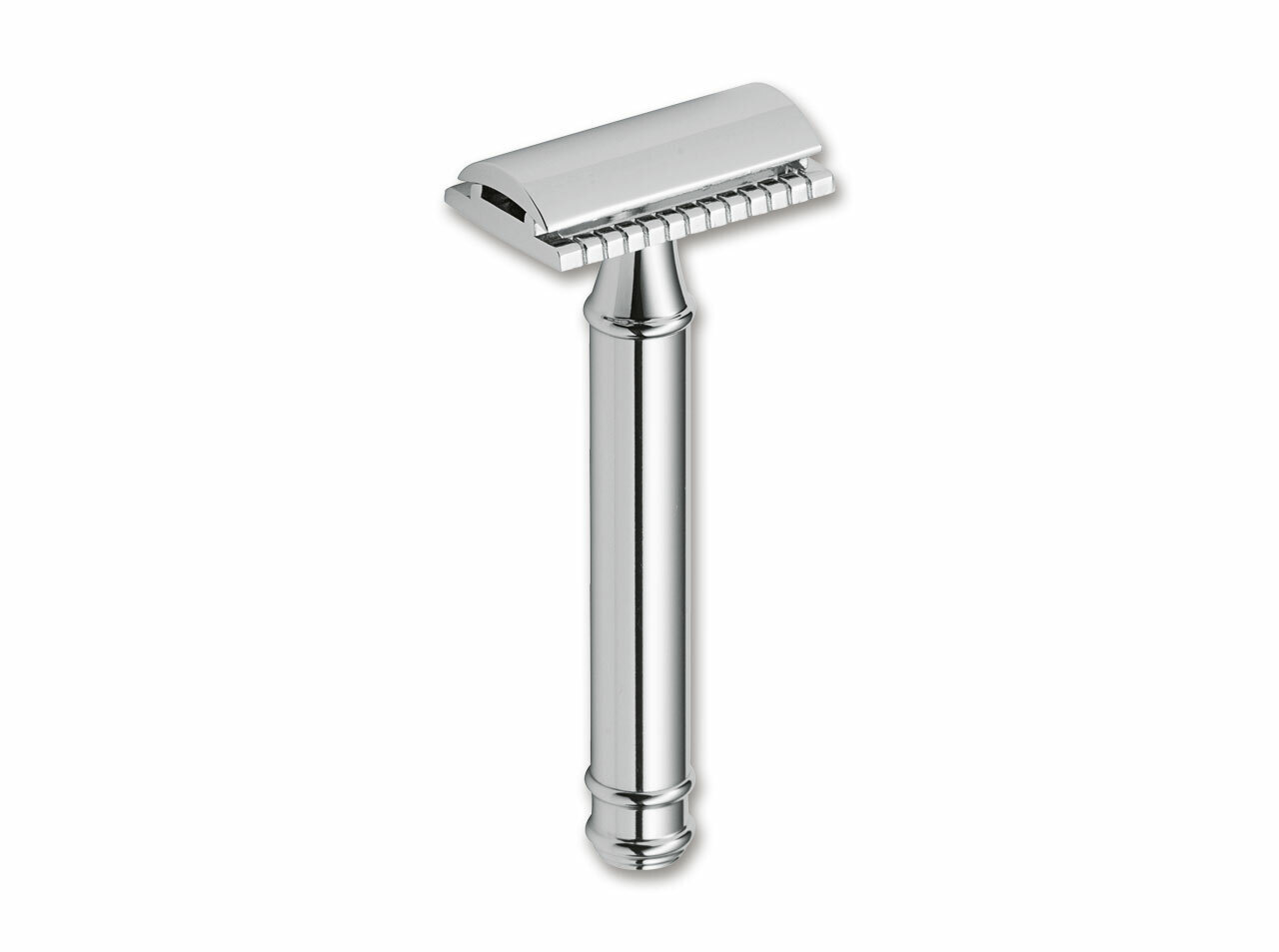 Bezpečnostný holiaci strojček/žiletka Böker Rasierhobel Classic v klasickom, tradičnom dizajne s uzavretým hrebeňom. Chrómová celokovová konštrukcia s diskrétnym logom v spodnej časti.