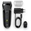 Obsah balení: Elektrický holicí strojek Braun Series 3, ochranný nástavec, Síťový adaptér pro automatické nastavení napětí 100-240 V (EU zástrčka se 2 hroty).