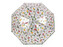 Průhledný deštník s barevným potiskem lučních květů působí romanticky, bude slušet dívkám i ženám. Je vystřelovací, určitě oceníte jeho velkou hloubku. Konstrukce deštníku je z kovového drátu a pružných lamel, tvoří osm polí. Díky nim je velice pevný, neohne se ani za největšího nečasu. Klasická tyč je zakončená pevnou rukojetí.