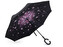 Obrácený deštník s barevným vnitřním potahem má revoluční řešení konstrukce. Díky opačnému otevírání a zavírání deštníku směrem vzhůru voda zůstane schovaná uvnitř v deštníku. Je to veliká výhoda např. když usedáte do automobilu, voda na vás již při zavírání nesteče, ale zůstane v deštníku. Jistě oceníte i jeho praktické sušení. Deštník sám stojí, stačí jej postavit na vhodné místo a voda sama steče ven, deštník už nemusíte rozevírat. Rukojeť ve tvaru C umožňuje deštník zaháknout přímo na paži, vaše ruce zůstanou volné např. k telefonování.