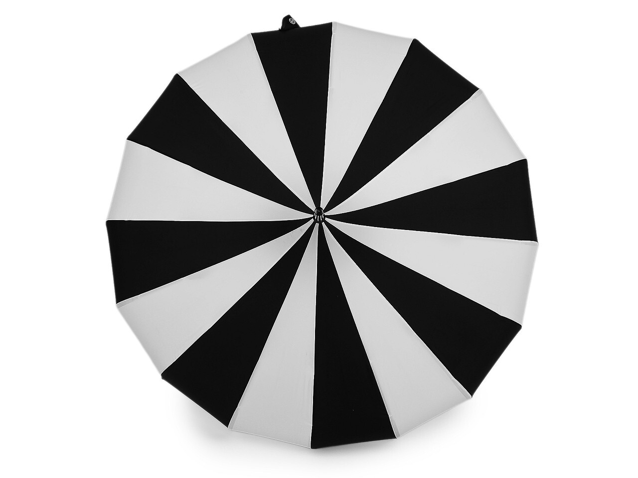 Designový deštník pagoda je díky svému speciálnímu tvaru a zajímavým liniím skvělým módním doplňkem. Spolehlivě vás ochrání v nepříznivém počasí. Konstrukce z kovového drátu a pružných lamel, tvoří 16 polí. Díky pružným lamelám je deštník velice pevný, neohne se ani za největšího nečasu. Klasickou tyč má zakončenou pevnou rukojetí.