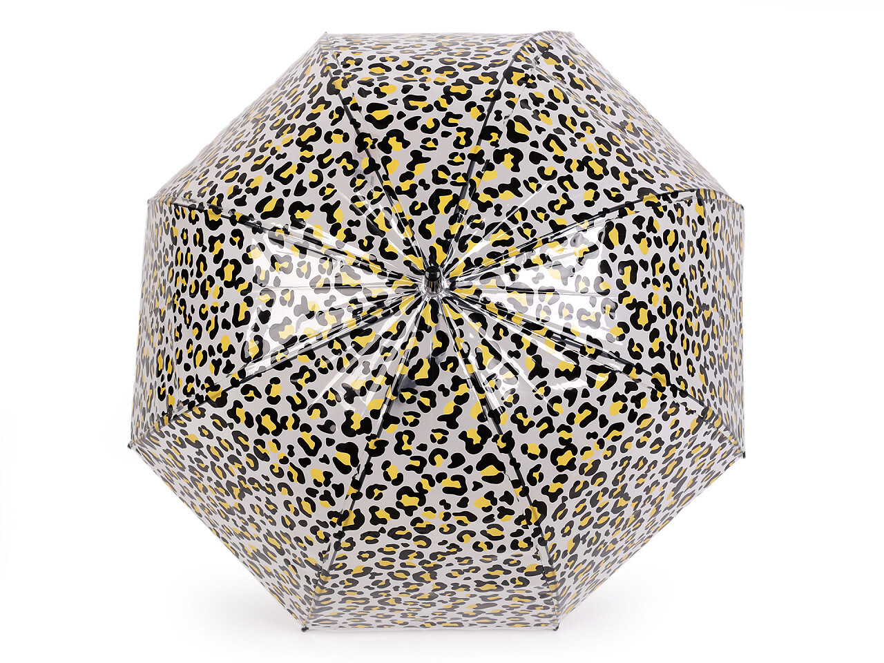 Dámský / dívčí průhledný vystřelovací deštník leopard - 1 ks - 3 žlutá