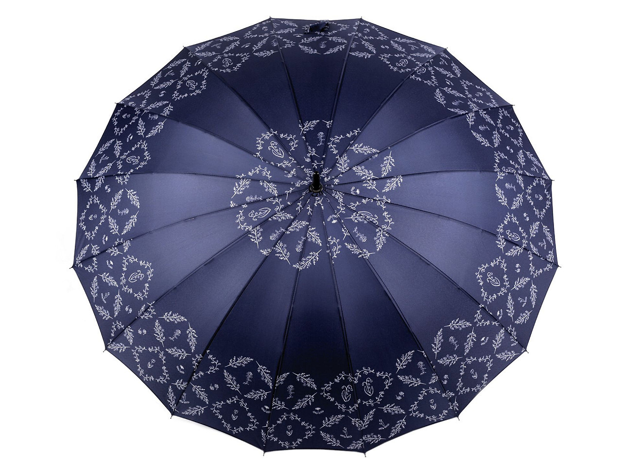 Dámský vystřelovací deštník větvičky a květy - 1 ks - 4 modrá tmavá
