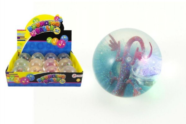 Míč Hopík ještěrka s barevnými třpytkami svítící 6,5cm asst 4 barvy 12ks v boxu