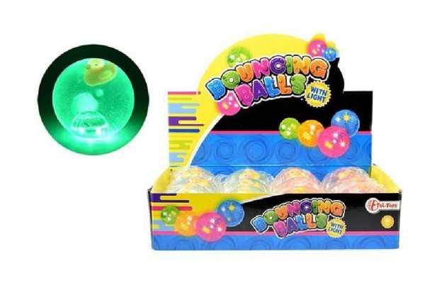 Míč Hopík kačenka s barevnými třpytkami svítící 6,5cm asst 4 barvy 12ks v boxu