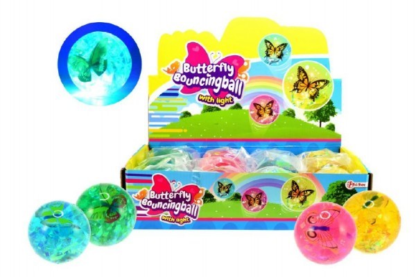 Míček/hopík motýl svítící 7,5cm, 4 barvy - 1 kus