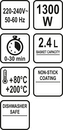 Napájení pomocí 230V zajistí 1 m dlouhý kabel. Fritéza nabízí příkon 1300W a zajistí zdravější přípravu pokrmů než u klasických fritéz na olej.