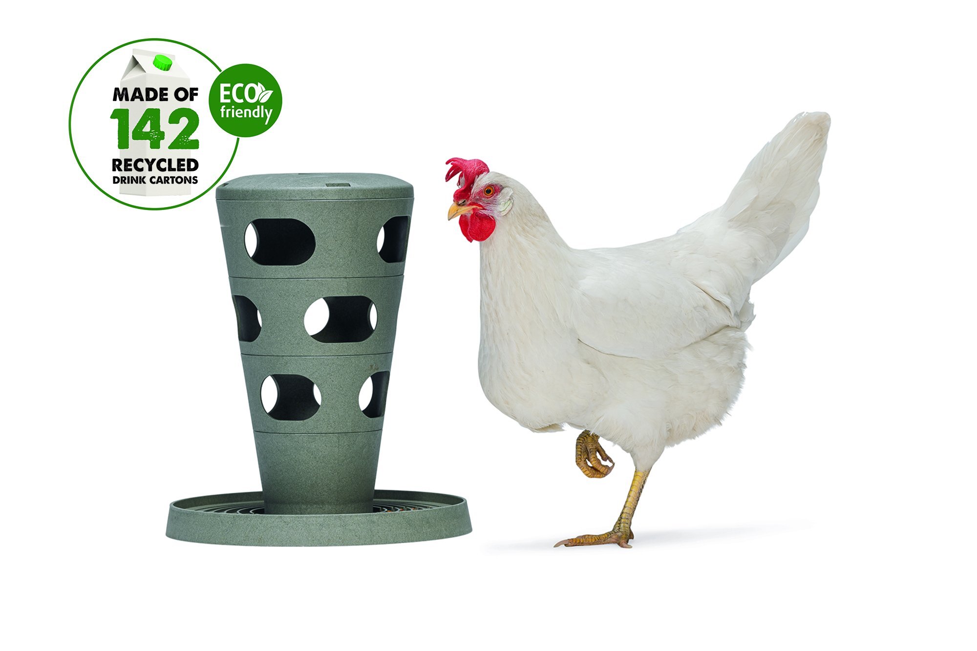 Věž se skládá ze tří pater, takže můžete krmit kuřata a slepice různých velikostí. Krmicí věž lze naplnit rozličnými druhy krmiva z horní a boční strany.