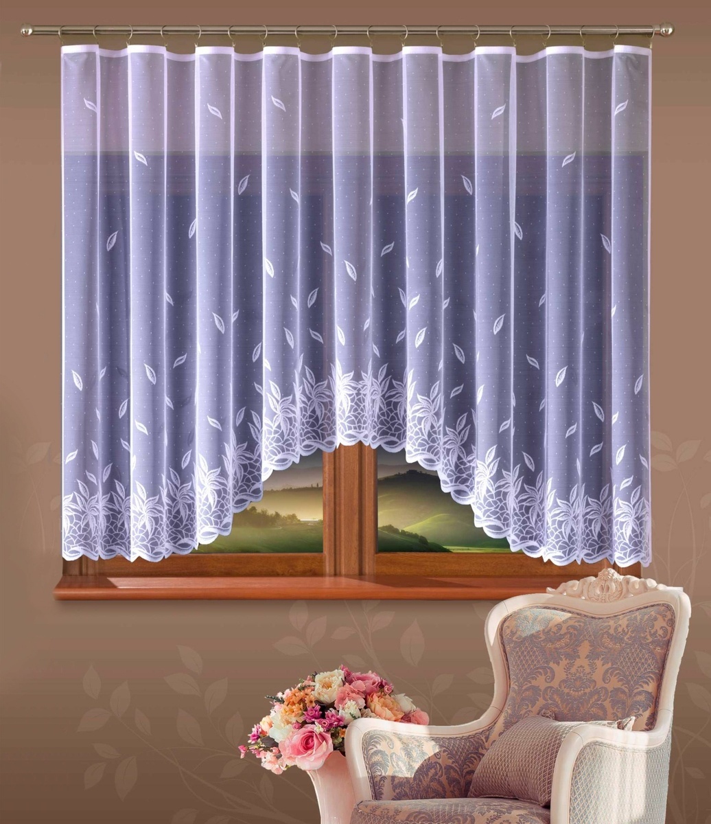 Atraktivní žakárová záclona v bílém provedení v krásným decentním dezénu s lístečky zkrášlí Váš domov a navodí elegantní vzhled v místnosti.
