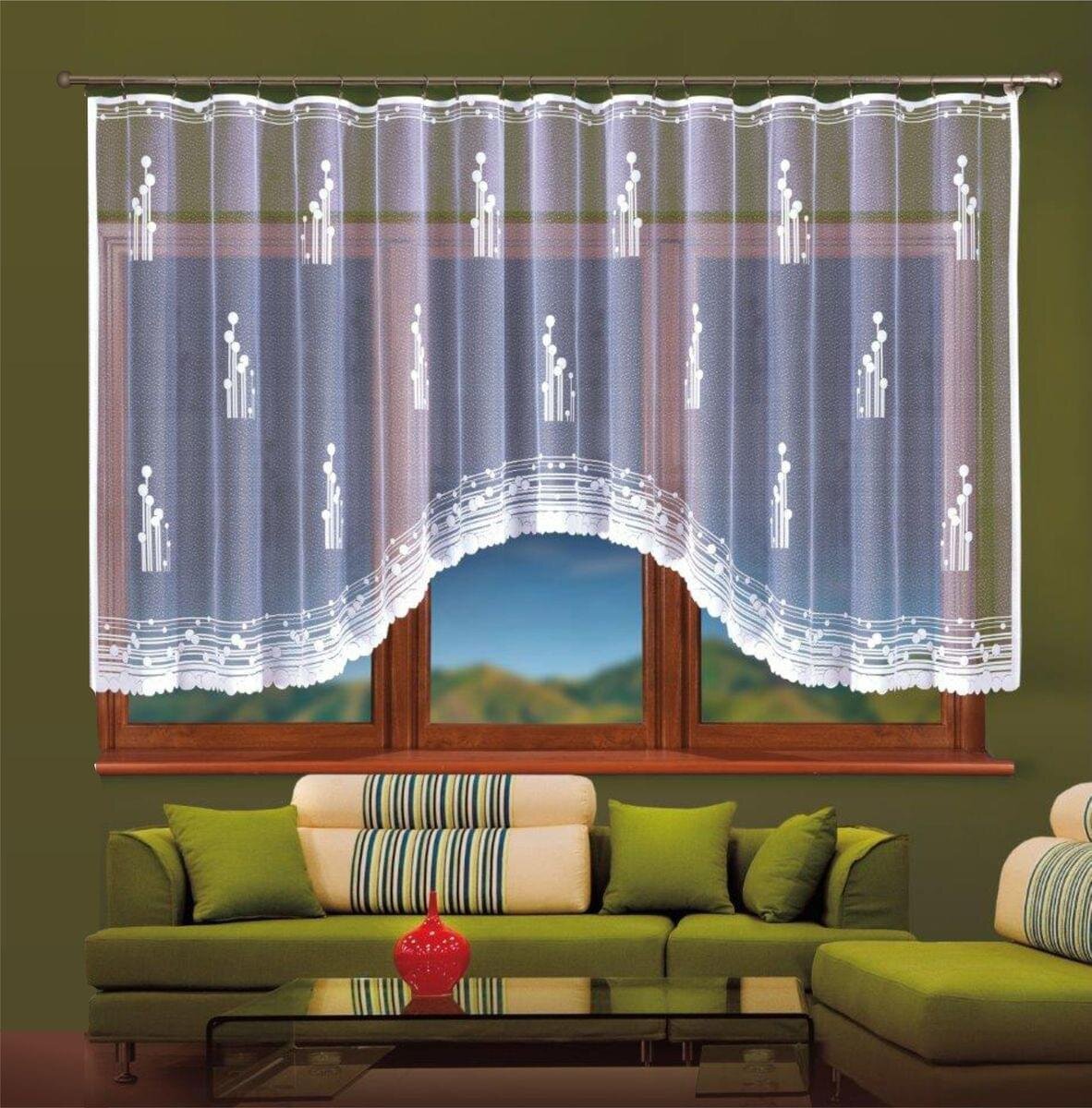 Atraktivní hotová záclona v moderním geometrickém dezénu vytvoří elegantní atmosféru v interiéru.