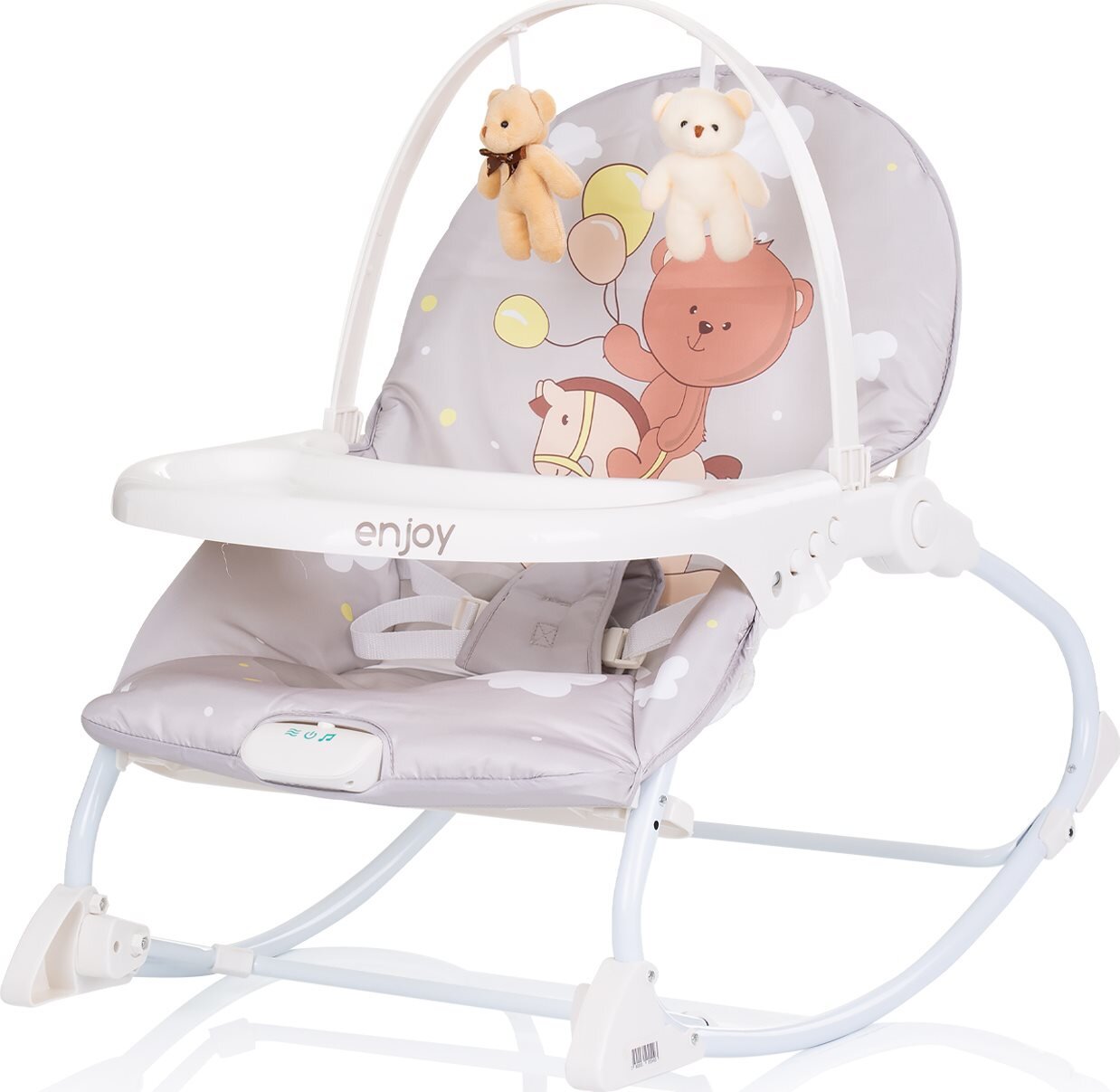 CHIPOLINO dětské houpací křesílko Enjoy je perfektní volbou pro rodiče, kteří chtějí svému miminku poskytnout pohodlí a zábavu v jednom. Díky příjemným melodiím, jemným vibracím a zavěšeným hráčkám bude vaše děťátko klidné a spokojené.