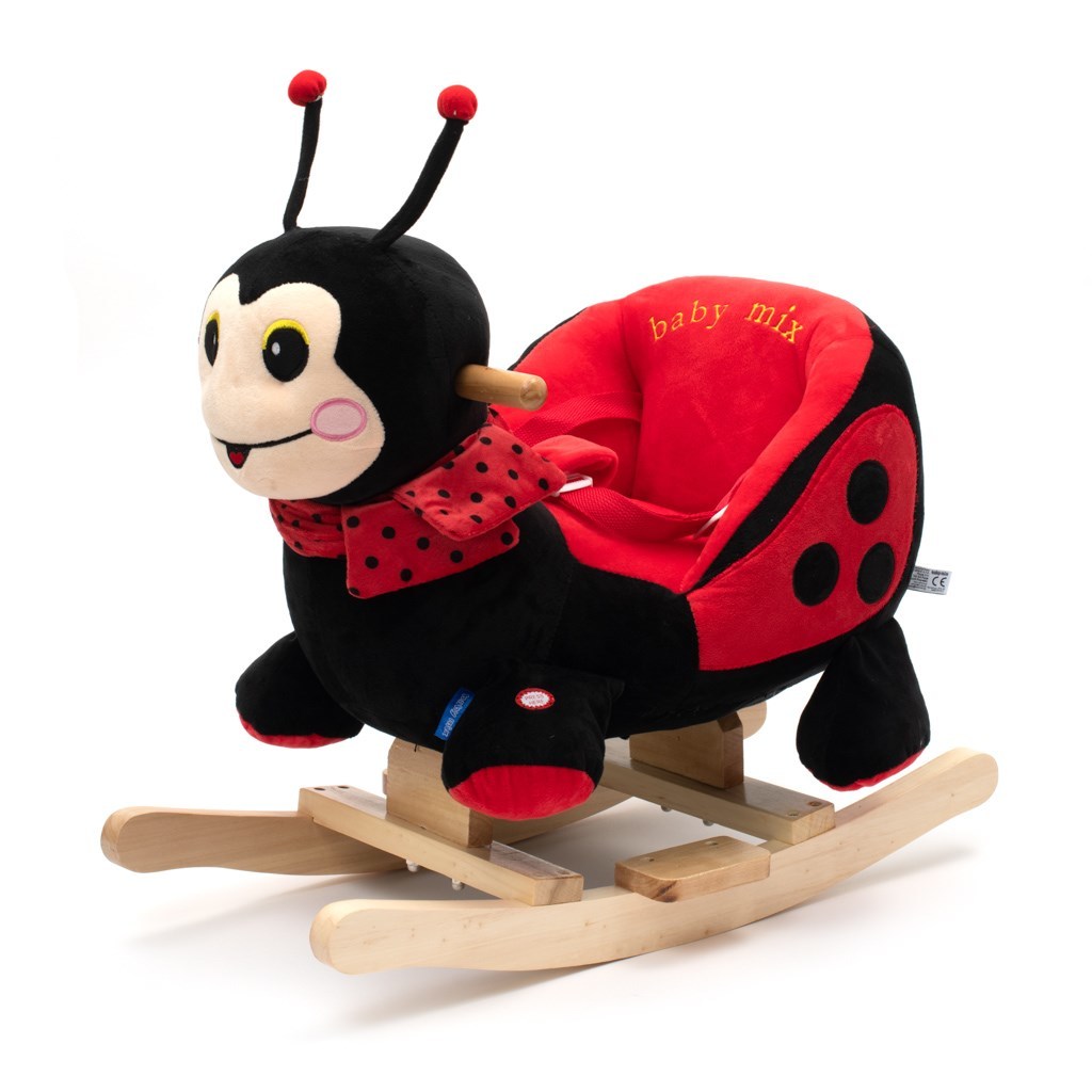 Houpací beruška byla navržena pro děti milující dobrodružství. Pohodlné sedlo, dřevěné rukojeti a houpací lišty poskytují pohodlí a bezpečnost při bezstarostném houpání dítěte. Beruška je ozdobena krásným šátkem. Když stisknete tlapku, hračka začne zpívat písničku. Během houpání dítě stimuluje koordinaci pohybů a rozvíjí držení rovnováhy. Kapsa s hudebním modulem a bateriemi je ukryta pod bříškem. Baterie LR44 jsou součástí dodávky. Je vyrobena z měkkého plyšového materiálu, pevné dřevěné lišty nebo rukojeti lze snadno odšroubovat.