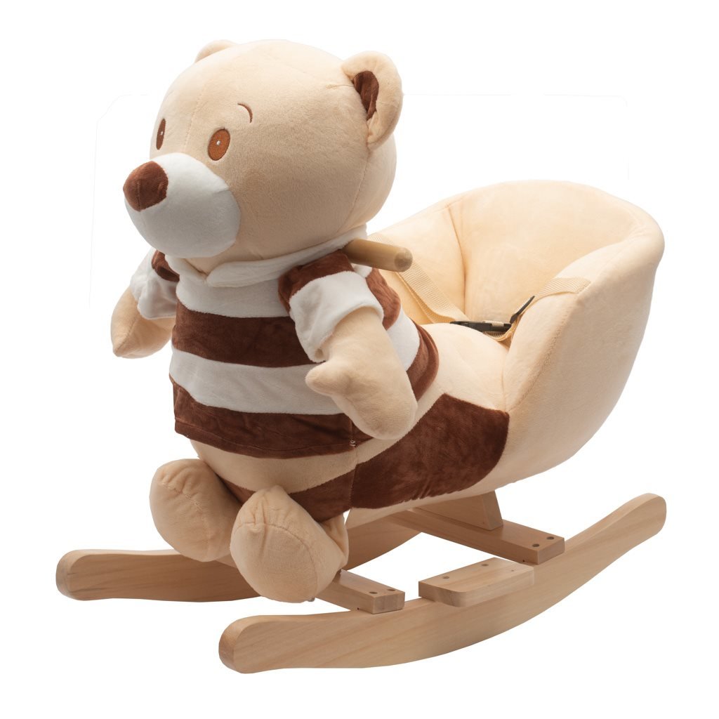 Houpací medvídek PlayTo má sedlo, dřevěné rukojeti a dřevěná stupátka na nohy. Houpání je pro malé děti velmi zábavné procvičuje držení rovnováhy. Po stisknutí ouška přehraje českou písničku "Prší, prší, jen se leje" nebo po stisknutí druhého ouška slovenskou verzi "Prší, prší, len sa leje". Dítě si samo dokáže z křesílka dosáhnout na ouško a spustit hudbu. Medvídek je vyroben z kvalitního měkkého plyšového materiálu, díky čemuž si Vaše dítě může dlouho užívat skvělou zábavu. Sedlo je díky optimálnímu tvaru pohodlné a bezpečné. Dítě lze připoutat pomocí bezpečnostního pásu.