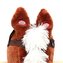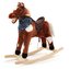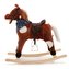 Neobyčejně krásný houpací koník s červeným šátkem na krku. Po zmáčknutí oušek koník zavrtí ocáskem, otevírá ústa, vydává zvuky klusajícího koně nebo zpívá písničku. Pohodlné sedlo, pevná uzda, dřevěné rukojeti nebo kovové třmeny zajistí vašim kovbojům ještě větší stabilitu a komfort během houpání. Je vyroben z měkkého plyšového materiálu, pevné dřevěné lišty nebo rukojeti lze snadno odšroubovat. Baterie se vkládají do pouzdra umístěného na bříšku koníka.