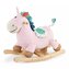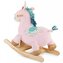 Krásný plyšový houpací jednorožec s dřevěnou základnou a držadly je hračkou, která láká k houpání i k pohlazení