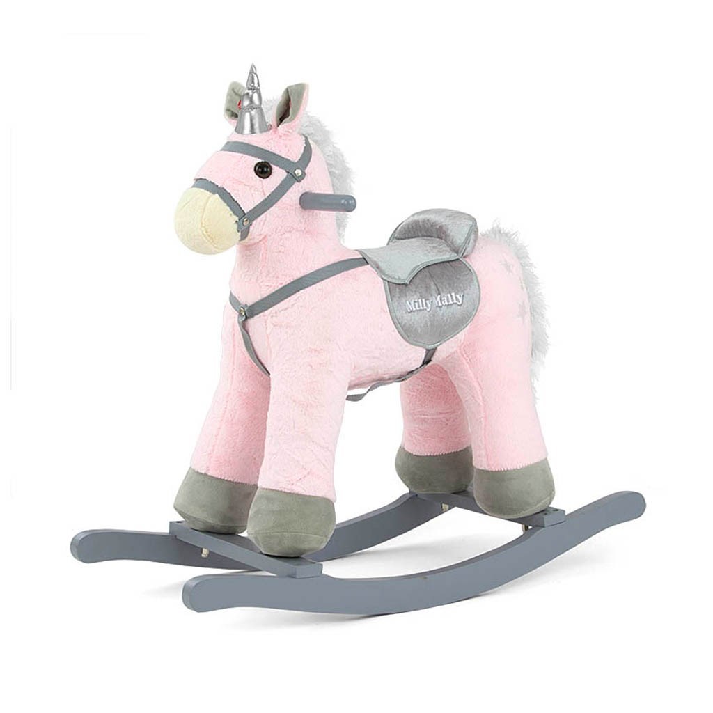 Plyšový houpací koník Pepe byl navržen pro děti, které mají rády dobrodružství. Pohodlné a ergonomicky tvarované koženkové sedlo vašemu dítěti poskytne pohodlí a bezpečnost během bezstarostného houpání. Pevné dřevěné lišty a rukojeti pomáhají dítěti udržet rovnováhu. Houpací lišty lze navíc jednoduše odšroubovat. Celý koník je vyroben z hebkého a velmi příjemného na dotyk plyšového materiálu. Po stisknutí ouška koník vesele zařechtá, po stisknutí druhého vydá zvuk klusajícího koně. Baterie se vkládají do poudra umístěného na bříšku.Charakteristika:- dřevěné houpací lišty- stabilní konstrukce- interaktívní uši- hebký a příjemný materiál- pohodlné koženkové sedlo- možnost demontáže houpacích lišt- baterie (2x AA) nejsou součástí hračky- nosnost do 30 kg- od 3 do 5 let- prohlášení o shodě CE Rozměry:- výška 62 cm- délka lišt 73 cm- délka koně 57 cm- šířka 30 cm- výška sedla od země 44 cm- šířka sedla 20 cmRozměry balení:- 59x55x24 cm- hmotnost netto 3,4 kg- hmotnost brutto 4,3 kg