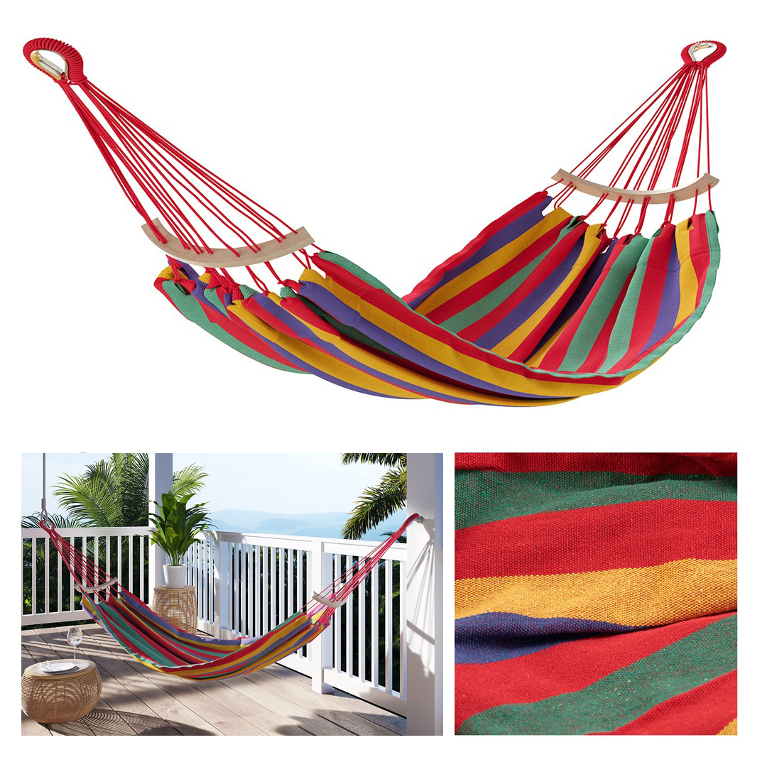 Originální závěsná houpací síť je vyrobená z pevné tkaniny s podílem bavlny. Je ideální pro relaxaci a odpočinek. Látková síť je zakončena na koncích provazy se silným okem k uchycení na háky ke sloupkům nebo ke stromu. Je vhodná jak pro vnitřní, tak pro venkovní užití, např. na balkony, do pokoje, v přírodě nebo do pergoly.