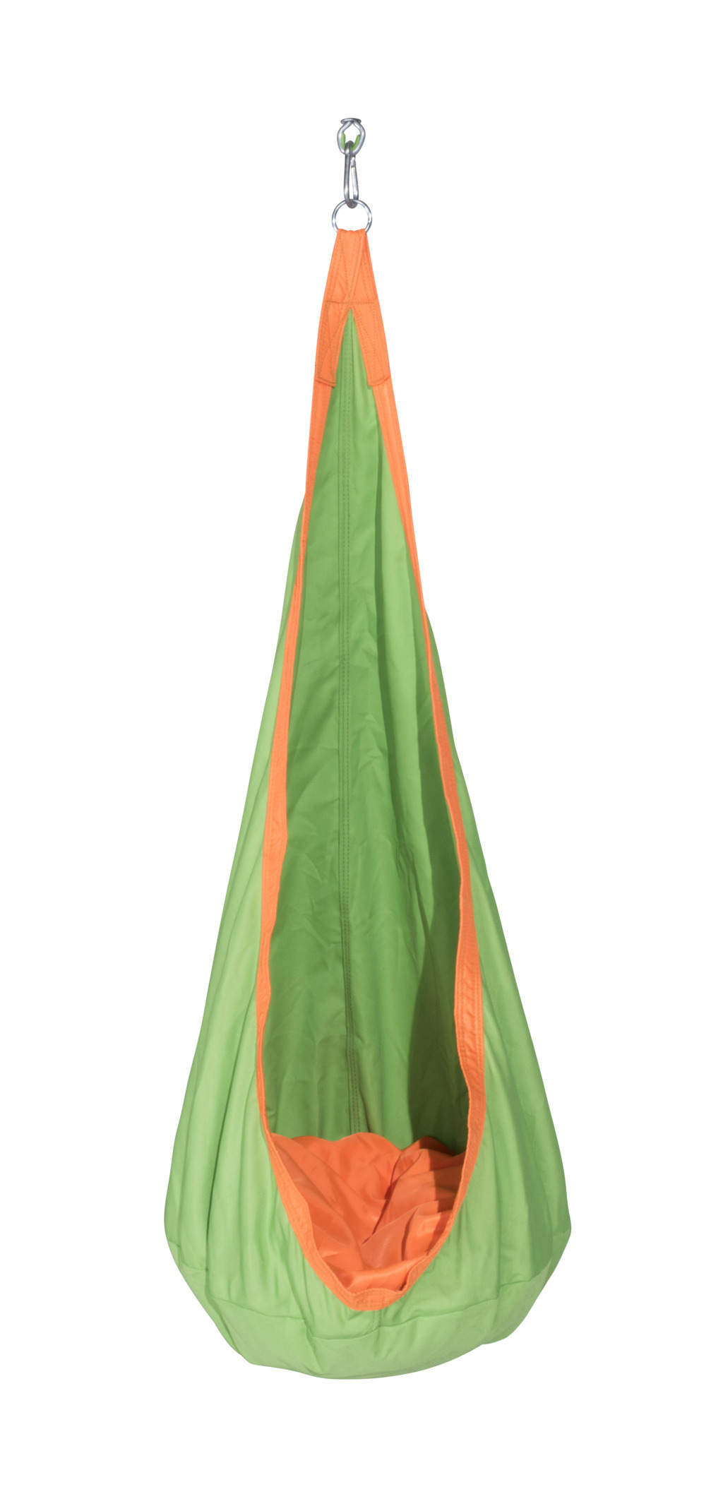 Visící pytel pro děti, zeleno-oranžový. Malý útulek pro děti i na houpačce. číst celé