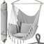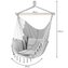 ODOLNÝ MATERIÁL - 65% bavlna zajišťuje správnou ventilaci , což ovlivňuje komfort používání závěsného křesla i v horkých dnech . Za pevnost sedáku je zodpovědná 35% příměs polyesteru. Pevný montážní kolo je připojeno k odolná lana , rovnoměrně rozmístěná po stranách houpací sítě přes dřevěnou příčku. Tato konstrukce tvoří celek snadno se zavěsí a houpací síť je dobře vyvážená a stabilní .