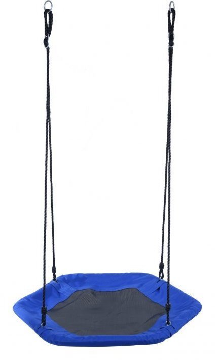 Šestihranná houpačka Čapí hnízdo v modré barvě je ideální pro venkovní i vnitřní použití a Vaše děti si ji zamilují. Sedadlo houpačky je vyrobeno z vysoce kvalitního polyesteru, který je odolný vůči povětrnostním vlivům a opotřebení. Pozinkovaný rám je chráněn pěnovým polstrováním tak, aby bylo Vaše dítě v bezpečí a zároveň mělo pohodlí při houpání. Čapí hnízdo má průměr sedadla 92 cm a maximální nosnost 100 kg . Dvě závěsná lana jsou výškově nastavitelná, a to až do 160 cm. Tloušťka závěsných lan je 1 cm. Houpačka se zavěšuje za kovové kroužky, které jsou provlečené na závěsných lanech. Vhodné pro děti od 3 let.