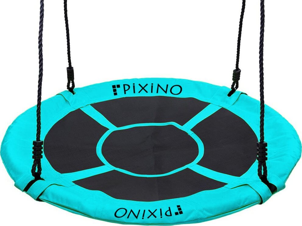 Houpací kruh Čapí hnízdo PIXINO v tyrkysovo-černém provedení je ideální pro venkovní i vnitřní použití a Vaše děti si ho zamilují. Sedadlo houpačky je vyrobeno z vysoce kvalitního polyesteru, který je odolný vůči povětrnostním vlivům a opotřebení. Pozinkovaný rám je chráněn pěnovým polstrováním tak, aby bylo Vaše dítě v bezpečí a zároveň mělo pohodlí při houpání. Čapí hnízdo má průměr sedadla 110 cm a maximální nosnost 150 kg . Dvě závěsná lana jsou výškově nastavitelná, a to až do 160 cm. Tloušťka závěsných lan je 1 cm. Houpačka se zavěšuje za kovové kroužky, které jsou provlečené na závěsných lanech. Vhodné pro děti od 3 let.