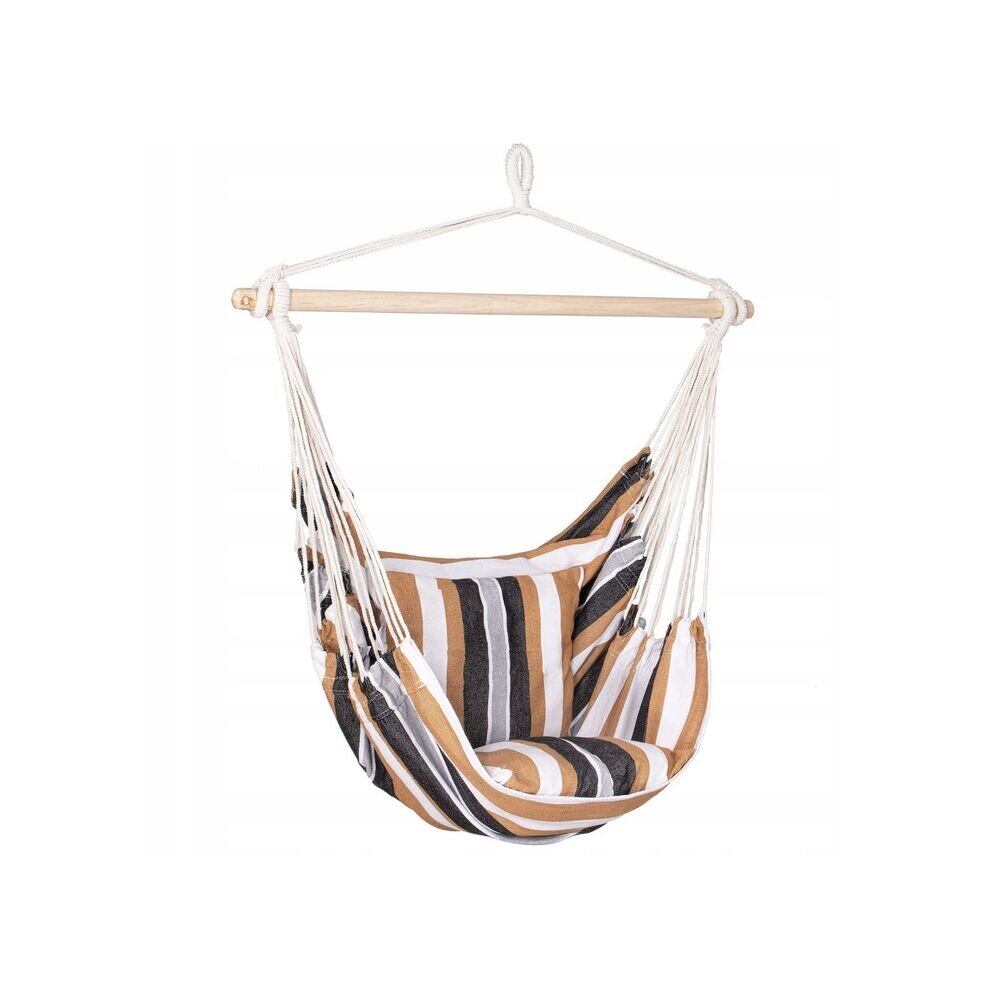 Závěsné houpací křeslo 130x100, hnědo-bílé SPRINGOS ROCCO