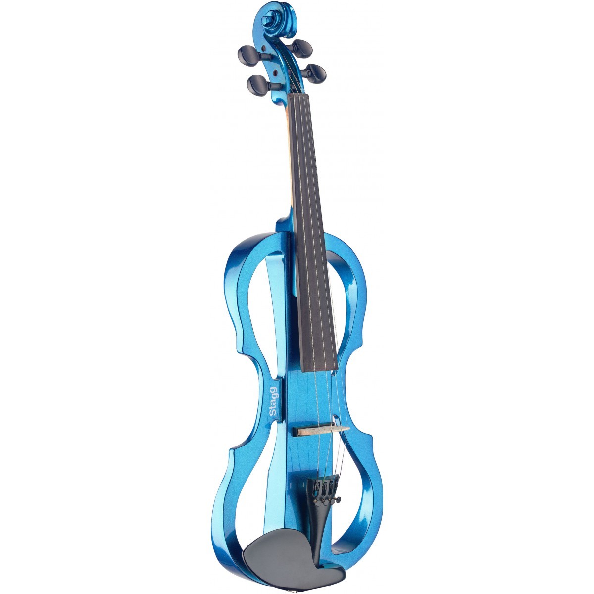 4/4 elektrické housle. Tělo masiv javor, menzura 325 mm, celková délka 590 mm, hmatník mořené dřevo, kobylka javor, struník černý plast se čtyřmi dolaďovači, podpěra brady a ladící kolíčky černý plast. Aktivní elektronika, dva otočné potenciometry pro ovládání tónu a hlasitosti, vypínač on/off s LED indikací, mikrofonní vstup mini jack 3,5 mm, sluchátkový výstup mini jack 3,5 mm, linkový výstup mini jack 3,5 mm. Dodáváno vč. vyztuženého nylonového pouzdra, smyčce, kalafuny, sluchátek a 9V baterie. Barva modrá metalíza.