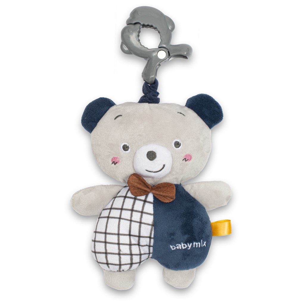 Dětská plyšová hračka s hracím strojkem a klipem Baby Mix Medvídek modrý