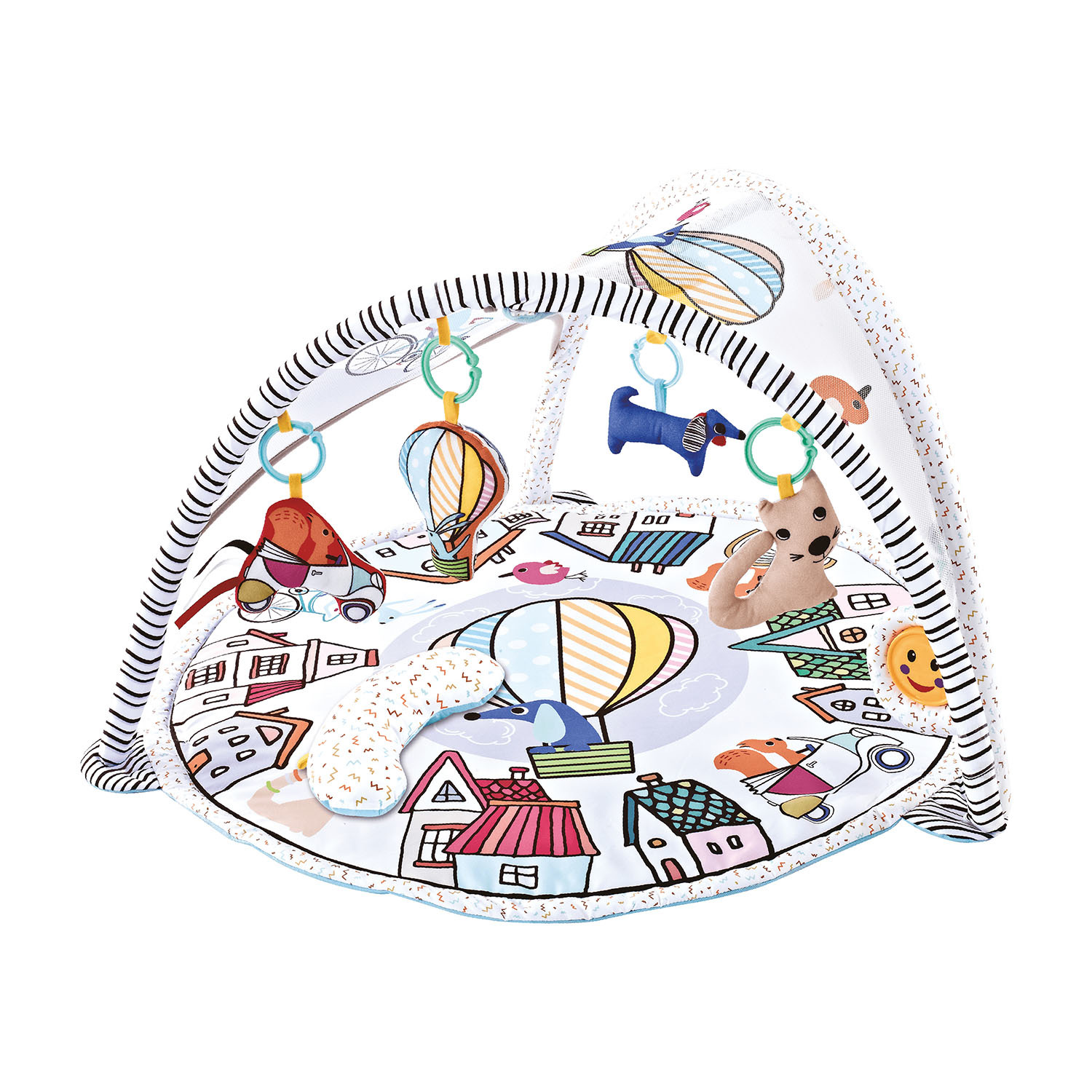 Podpořte rozvoj svého miminka hravým a poutavým způsobem! Hrací deka Town Square je ideálním pomocníkem pro první objevování okolního světa a posilování psychomotorických dovedností.
