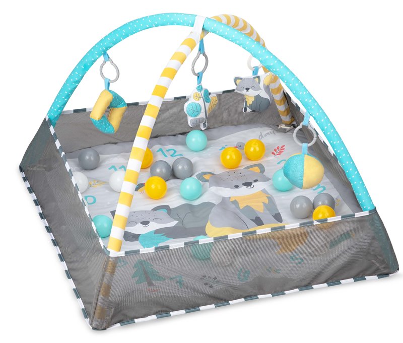 Podložka je vyrobena v jemných, univerzálních barvách, které potěší jak malou princeznu, tak i malého prince. Veselé motivy s liškami a jedinečné závěsné hračky podnítí dětskou zvídavost a motorické dovednosti. Díky funkci 4 v 1 poslouží jako hrací deka, ohrádka, bazénik s loptičkami i podložka pro fotografování nejdůležitějších momentů v životě vašeho miminka.