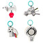 - Mata posiada cztery dwustronne zawieszki: lusterko, grzechotkę, piszczałkę i gryzak wspierające rozwój dziecka. Jedna strona zawieszek jest biało-czarna, druga strona jest kolorowa.