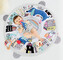 - Mata posiada grafikę przedstawiającą przyjaciół z podwórka w kontrastujących kolorach czerni i bieli w połączeniu z żywymi barwami