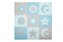 Podložka MoMi NEBE obsahuje 39 prvků - 9 puzzle, 18 dekorativních prvků různých velikostí - hvězdy, slunce, mraky a 12 prvků okraje. Každé puzzle má rozměr 30x30 cm.