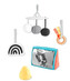 - 5 zabawek rozwojowych: karuzela gradacyjna, lusterko eksploracyjne, drewniany pierścień, tęczowa grzechotka i ząbkowane drzewko