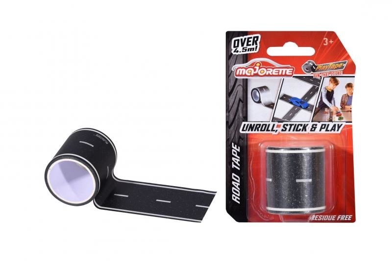 Lepící páska v podobě silnice, přes 4,5 m dlouhá, 5 cm široká. Ideální pro autíčka autička o velikost 7,5 cm. Přilepí se na jakýkoli plochý povrch, snadno se sundá a nezanechá stopy, použitelná vícekrát, prodyšná, recyklovatelná. 12 ks na stripu.