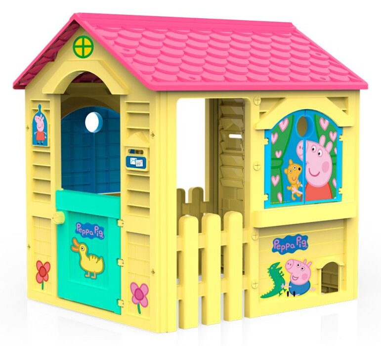 Moderní domeček na zahradu z kvalitního plastu , vyvedený ve veselých barvách. Nemá žádné ostré hrany, proto je zcela bezpečný i pro nejmenší děti. Domeček má zelená plotová vrátka, sedlovou střechu a otevíratelné okenice. Výhody domku: