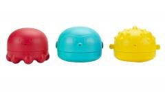 Zestaw trzech rozkręcanych zabawek kąpielowych w kształcie zwierząt morskich (pingwina, ośmiornicy oraz rozdymki tygrysiej), których dolne i górne elementy możemy ze sobą dowolnie mieszać tworząc fantazyjne zwierzostwory. Każdą z zabawek do kąpieli można napełnić wodą, by uzyskać efekt padającego deszczu. Figurki do wody wyposażone są w łatwy system otwierania, z którym poradzą sobie nawet dzieci, a ich kształt idealnie dopasowany jest do małych rączek.