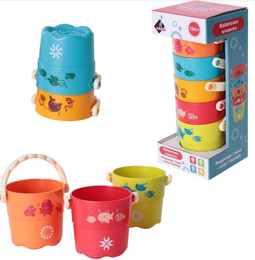 Objevte zábavu a rozvoj dovedností vašeho dítěte s tímto barevným setem kbelíčků!