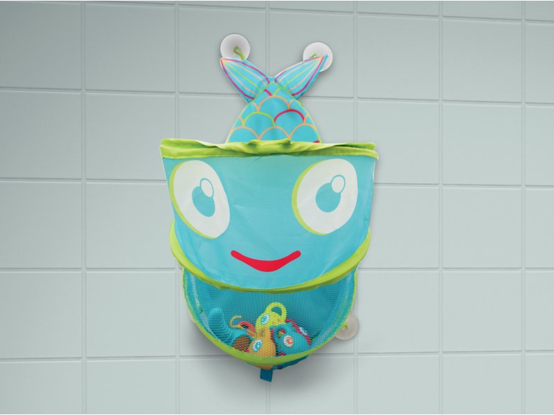 Originální skládací koš na hračky v podobě usměvavé ryby snadno připevníte díky čtyřem přísavkám nad vanu. Síťovinové díly umožňují odtok vody z uložených hraček a jejich vyschnutí.Pokud koš nepoužíváte, je možné jej složit do plochého kompaktního tvaru.Rozměry cca 30x52cm.