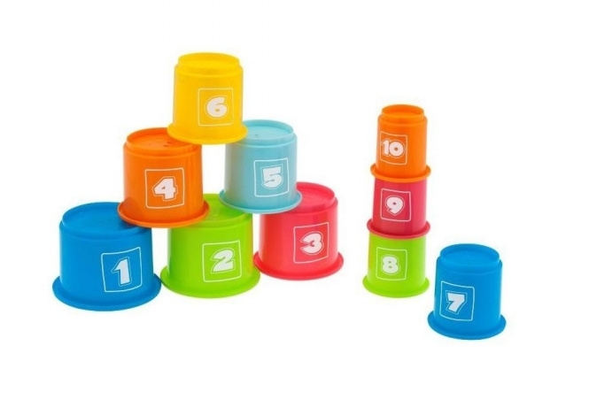 Sada obsahuje 10 očíslovaných kelímků různých velikostí a barev.