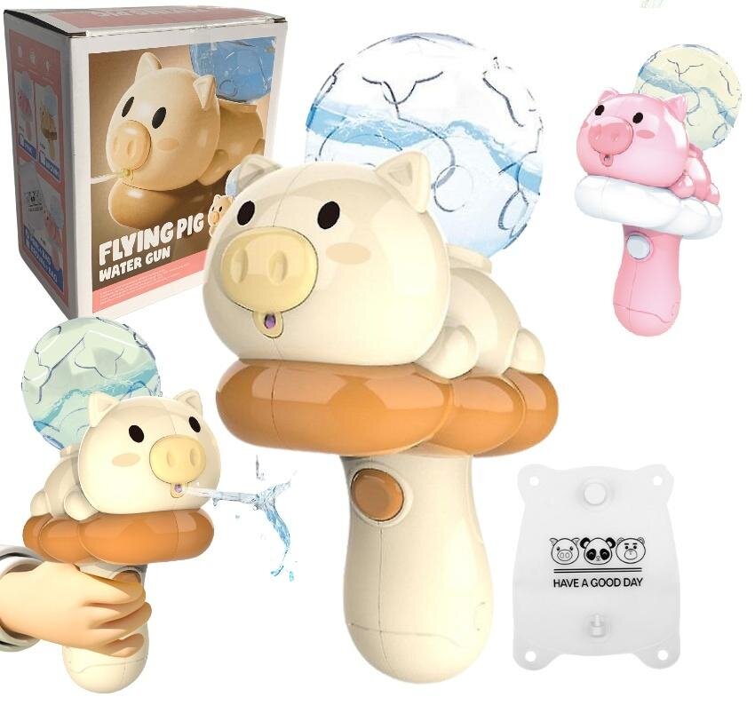 Pistolet na wodę w kształcie uroczej świnki na chmurce to podstawowa zabawka podczas letnich przygód na świeżym powietrzu. Niezastąpiony zarówno na podwórku, basenie, jak i podczas kąpieli zapewnia niekończącą się dawkę radości i ochłody podczas upalnych dni.