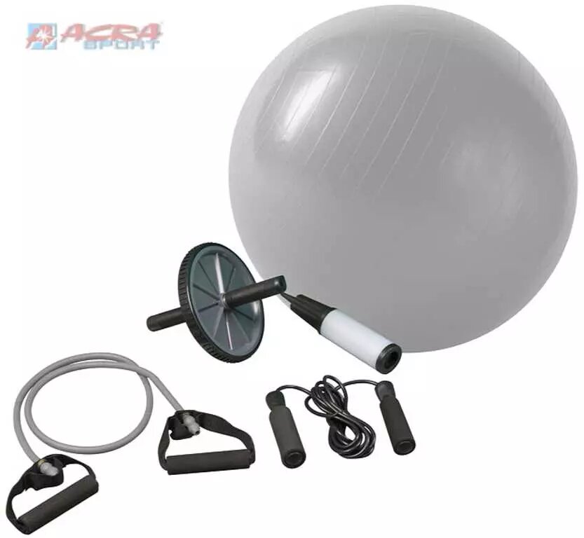 ACRA Fitnes sada pro posilování a rehabilitaciFitness set univerzální obsahuje gymnastický míč (Gym Ball / Gymnastik Ball / Míč na skákání) 65 cm, posilovací kolečko, gumový expander 7x11x1200mm, dvoučinná pumpička 25cm, švihadlo číst celé