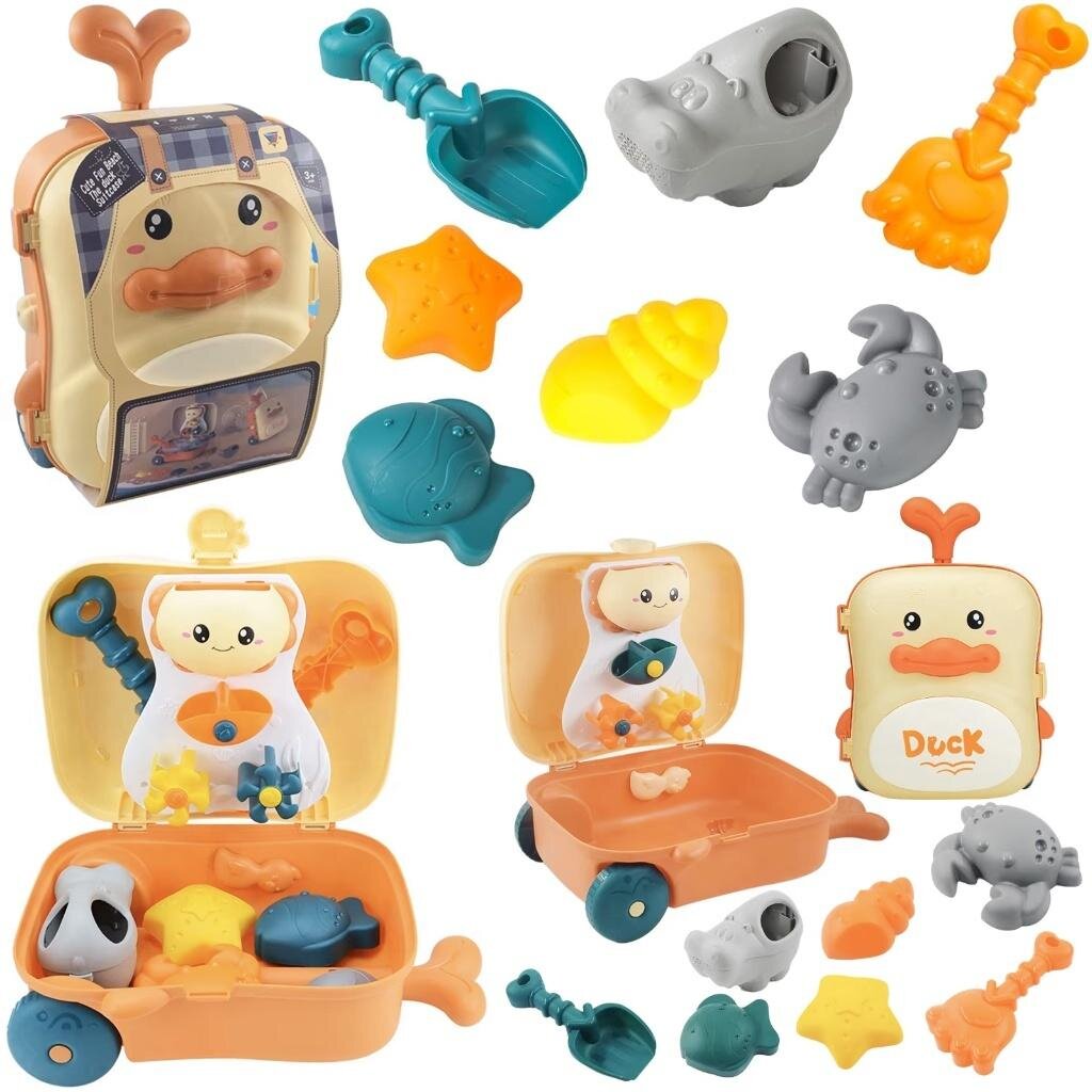 Zestaw do Piasku w Walizce na Kółkach 8 elementów - Przygoda Czeka! Przedstawiamy fantastyczny zestaw do piasku, który zamieni każdą wizytę na plaży czy w piaskownicy w niezapomnianą przygodę! Ten praktyczny zestaw spakowany w uroczą walizkę na kółkach sprawi, że transport zabawek będzie dziecinnie prosty, a zabawa jeszcze przyjemniejsza. Cechy produktu: Praktyczna walizka na kółkach: Wszystkie elementy zestawu mieszczą się w poręcznej walizce z wysuwaną rączką i kółkami, co ułatwia transport i przechowywanie zabawek. Walizka sama w sobie może być elementem zabawy! Dostępna w dwóch uroczych wzorach: kaczuszki i misia. Różnorodne akcesoria: W skład zestawu wchodzą różnorodne foremki do piasku (morskie stworzenia, gwiazdka, muszelka), łopatka, grabki oraz inne ciekawe akcesoria, które urozmaicą zabawę w piasku. Kreatywna zabawa: Foremki pozwalają na tworzenie fantastycznych kształtów i budowli z piasku, rozwijając wyobraźnię i zdolności manualne dziecka. Łatwość czyszczenia: Plastikowe elementy są łatwe do utrzymania w czystości - wystarczy opłukać je wodą po skończonej zabawie. Idealny na podróż: Kompaktowa walizka sprawia, że zestaw jest idealny do zabrania na plażę, do parku czy na wakacje. Bezpieczny materiał: Wykonany z trwałego i bezpiecznego tworzywa sztucznego, przyjaznego dla dzieci. Dwa urocze wzory walizki: Dostępny w dwóch wariantach z motywem kaczuszki i misia, co dodatkowo zachęci dzieci do zabawy. Wielkość : 25x35x15 Ten zestaw do piasku w walizce na kółkach to doskonały pomysł na prezent dla każdego małego odkrywcy i miłośnika zabaw na świeżym powietrzu. Zapewnij swojemu dziecku mnóstwo kreatywnej zabawy, gdziekolwiek się znajdziecie!